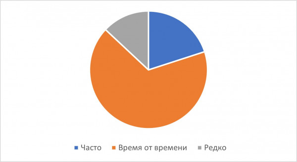 Большинство респондентов (61 %) отметили, что их преподаватели временами используют элементы, схожие с задачно-ориентированным подходом, давая задания, сфокусированные на реальном результате (рис. 4).